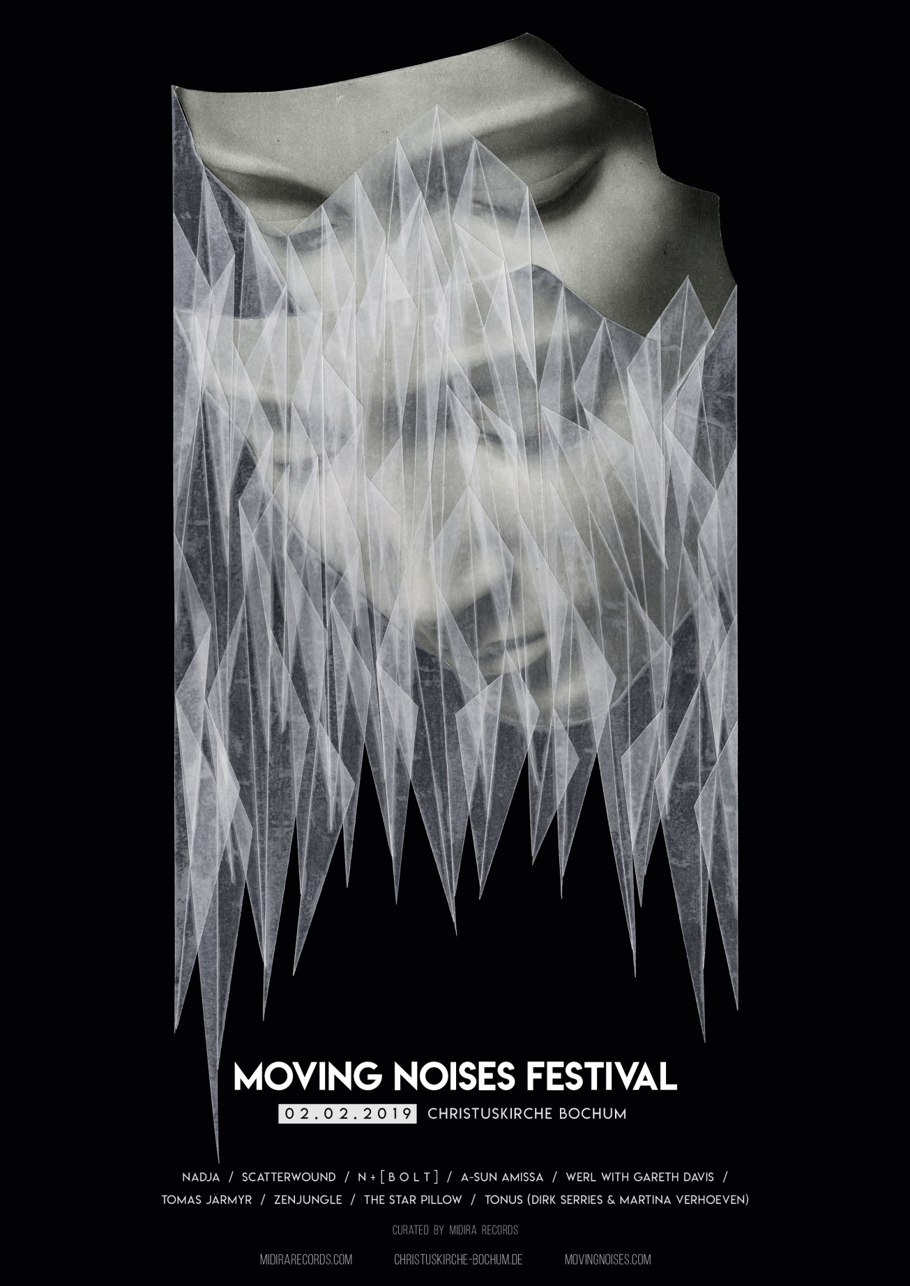 Auch für das Artwork wurde ein Midira Records Künstler verpflichtet. Der Däne øjeRum arbeitet musikalisch und in den bildenden Künsten mit Collagen und schafft Klanglandschaften und Bilder, die voller kleiner Details sind, die es gilt zu erkunden. Die Collage des Festivalposters stammt aus der „Nothing“ Reihe und ist eine passende Ergänzung zur Musik des Festivals.